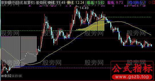 STICKLINE(XG1 AND C<前低 AND O>前低,C*0.998,前低,4,1),COLORWHITE;