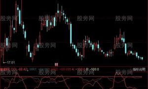 N:=21;P:=42;M:=21;wr1:100*(HHV(HIGH,N)-CLOSE)/(HHV(HIGH,N)-LLV(LOW,N));WR2:100*(HHV(HIGH,P...