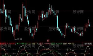 N:=8;M:=13;P:=60;S:=3;V1:=(C*2+H+L)/4*10;V2:=EMA(V1,13)-EMA(V1,34);V3:=EMA(V2,5);V4:=2*(V2...