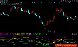 上线:=SMA(C,6.5,1);下线:=SMA(C,13.5,1);上线1:=SMA(C,3,1);下线1:=SMA(C,8,1);STICKLINE(上线>下线 , 上线...