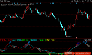 N:=27;M0:=5;M1:=3;M2:=2;TOP=100;DOWN=0;HV=HHV(HIGH,N);LV=LLV(LOW,N);RSV=SMA((CLOSE-LV)/(HV...