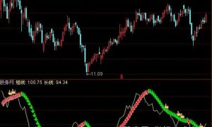 A1:=EMA(CLOSE,7)-EMA(CLOSE,21); B1:=EMA((0.668*REF(A1,1)+0.333*A1),1); 短多:IF(A1>=B1,A1,...