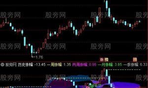 涨幅:=(C-REF(C,1))/REF(C,1)*100; 历史涨幅:SUM(涨幅,0),NODRAW; 一周涨幅:历史涨幅-REF(历史涨幅,5),NODRAW; 两周涨幅:历...