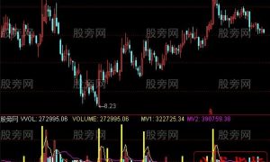 STICKLINE(vol/CAPITAL*100<=3,0,3,5,0),COLOR600000; 3,DOTLINE,COLORLIMAGENTA; 成交量:V,COLO...