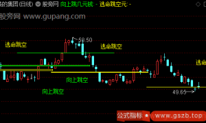 跳空:=HIGH<(REF(LOW,1)-0.001) || LOW>(REF(HIGH,1)+0.001);跳空缺口:=COUNT(跳空,3)=1;DIF:=EMA(...