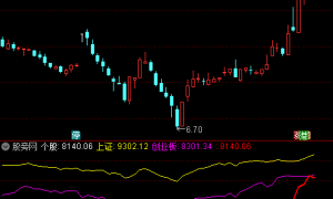 A:=LLV(10000/C,200);个股:A*C,LINETHICK2;B:=LLV(10000/"999999$C",200);上证:B*"999999$C";CC:=LLV...
