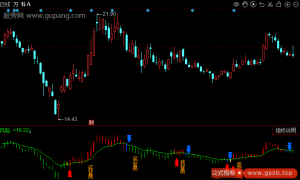 {指标介绍:当价格站稳55日线(蓝色K线区)且三条均线向上发散时做多;跌破55日线(橙色K线区)且MACD死叉时减仓;在前期高/低点或红黑压力支撑线附近注意反转信号;短期可参考5日...