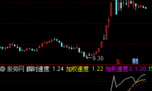 N:=24;M:=12;瞬时速度:(H+L)/REF(H+L,N);加权速度:MA(瞬时速度,M);加权速度2:EMA(瞬时速度,M),DOTLINE;均线空间:(HHV(H-MA...