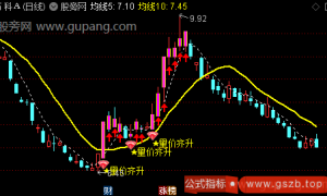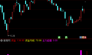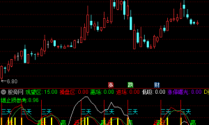 {指标介绍:1)红绿白线是走势线;2)绿色色块和红色色块是操作提示区;3)低吸是长期下跌后抄底信号提示;4)紫色色块是概率性区域提示,这个区域出现涨停的概率要比非紫色区域高,但不代...
