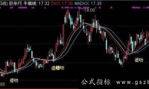 重心:=(H+L+O+C*3)/6; NX:=(3*CLOSE+LOW+OPEN+HIGH)/6; 牛线:=(20*NX+19*REF(NX,1)+18*REF(NX,2)+17*...