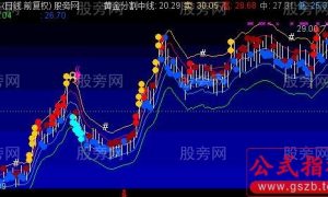 {黄金分割线} N:=34; 高1:=REF(HHV(H,N),3); 低1:=REF(LLV(L,N),3); H1:=高1-(高1-低1)*0.191; H2:=高1-(高1-...
