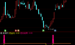 主力突破:=V>REF(V,1)*2 AND C>O;筹码突破:=BARSLAST(主力突破);STICKLINE(主力突破,O,C,2.2,0),COLORYELLO...