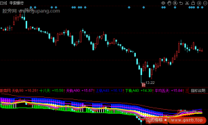 {指标介绍:当价格站稳55日线(蓝色K线区)且三条均线向上发散时做多;跌破55日线(橙色K线区)且MACD死叉时减仓;在前期高/低点或红黑压力支撑线附近注意反转信号;短期可参考5日...