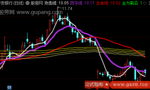 {使用说明:1、以攻击线(白线)为主导,白色线下穿紫线和红线,看空,考虑卖。2、白色线上穿紫线和红线,看多,考虑买。3、这里说的都是以看日线为例。高手可以结合60分,周线去预判个股...