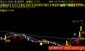{指标介绍:1、气壮山河结合了MACD,KDJ两大指标。可做中短期行情。2、绿色牛熊线之上中线看涨,之下看空,清晰明了。3、金黄色K线代表KDJ金叉,深蓝色的代表死叉4、背景是绿色...