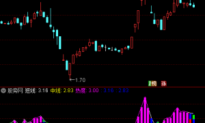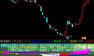 {指标介绍:1)红绿白线是走势线;2)绿色色块和红色色块是操作提示区;3)低吸是长期下跌后抄底信号提示;4)紫色色块是概率性区域提示,这个区域出现涨停的概率要比非紫色区域高,但不代...