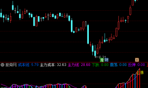 筹峰:=((COST(85)+COST(15))/2+COST(50))/2,COLOR9900FF;成本线:MA(筹峰*0.80,10),COLORFF6600,LINETHIC...