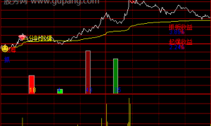 {指标介绍:1、四条线分别是白色天线、红色中线、绿色牛熊线和黄色砥柱线;2、主图红色线(中线),为追涨杀跌线,短线追涨时,K线在红色线之上持有,跌破红色线卖出。3、股价横盘震荡后小...