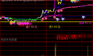 {指标介绍:这个主图分时线是有颜色的,根据资金量进攻强度大小来上色,红色最强,持续红色时间越久越可能冲击涨停。根据强度由强到弱依次是大红色—紫色—黄色&md...