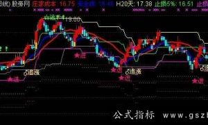 庄家成本: MA(CLOSE,18),COLORRED,LINETHICK2; 安全线: SMA(LOW,5,1),COLORBLUE,LINETHICK2; H20天:HHV(C...