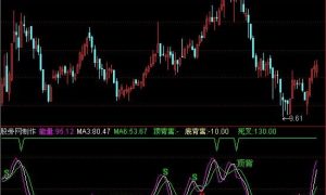 指标低位发生底背离时可以买入,该指标能提示个股所处相对位置。 趋势线:EMA(100*(C-LLV(LOW,34))/(HHV(H,34)-LLV(LOW,34)),3),colo...