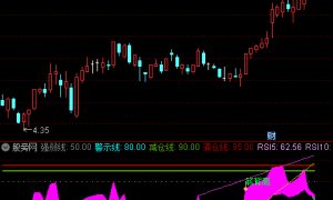 {指标介绍:1、图中灰色线段代表强弱线,浅蓝色虚线代表警示线,浅绿色实线代表减仓线,红色线段代表清仓线。2、当个股在指标中的灰色线之上则表示目前处于强势,当达到浅蓝色警示线时,我们...