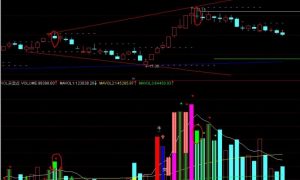 说明:黄色为立桩量,绿色长竖条为逃顶提示,蓝色与红箭头为突破,红色为牛, 紫色为立桩三天法则成立,笑脸为寻底,棕色与绿箭头为破位,淡红色黑中 线涨停,深绿色黑中线跌停,∠为...