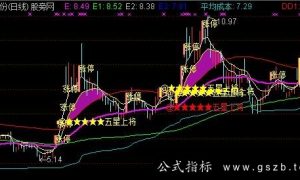 DRAWBAND(EMA(C,12),RGB(166,16,160),EMA(COST(65),30),RGB(0,0,0));DRAWKLINE(H,O,L,C); E:EMA(...